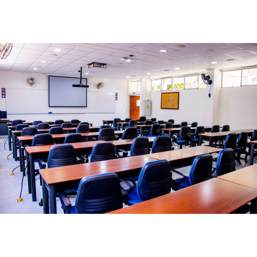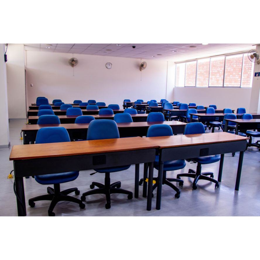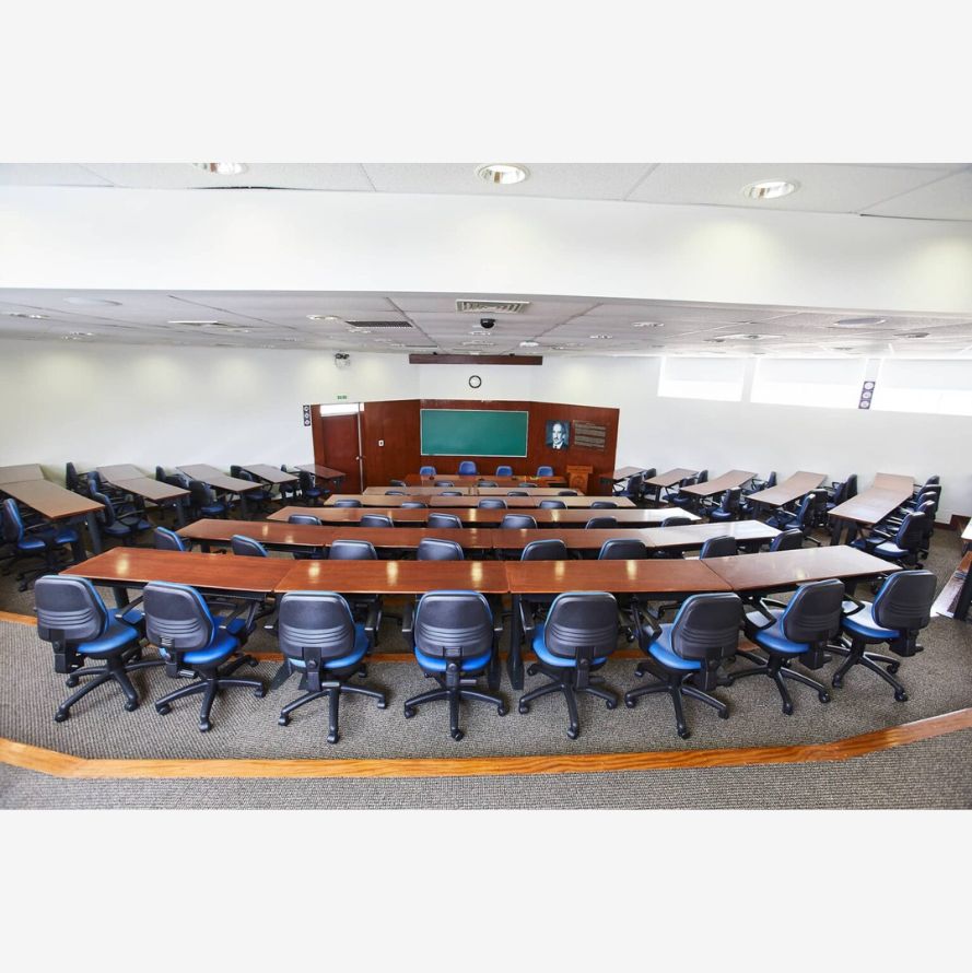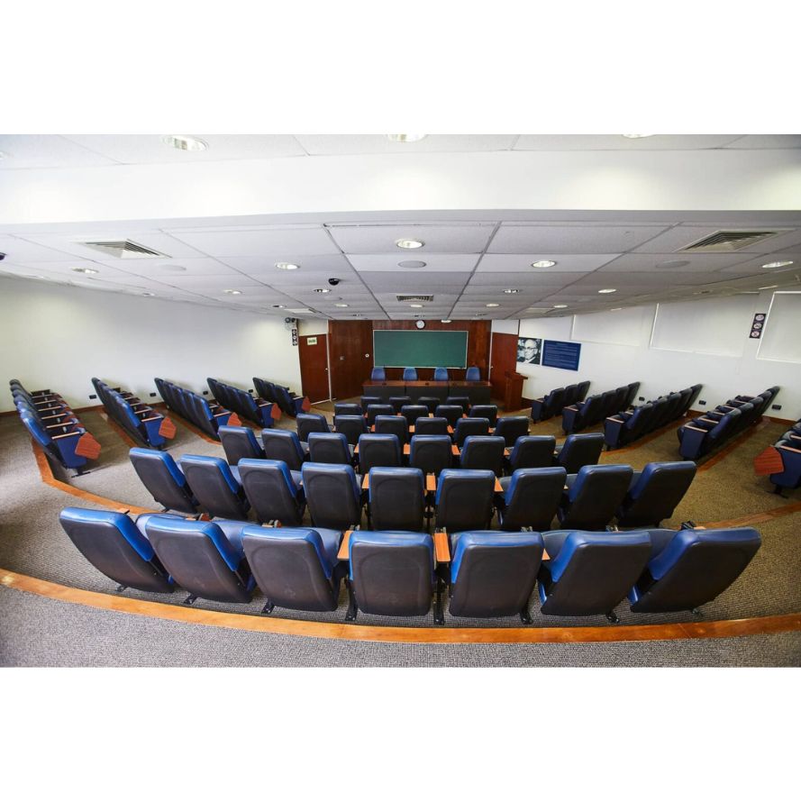 • Capacidad para 80 personas, con asientos individuales y mesas integradas para toma de apuntes.