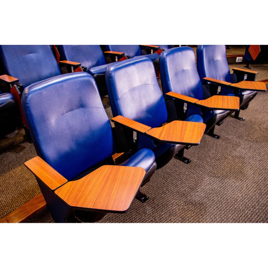 • Capacidad para 98 personas con butacas ergonómicas e individuales, equipadas con mesa plegable para escritura.