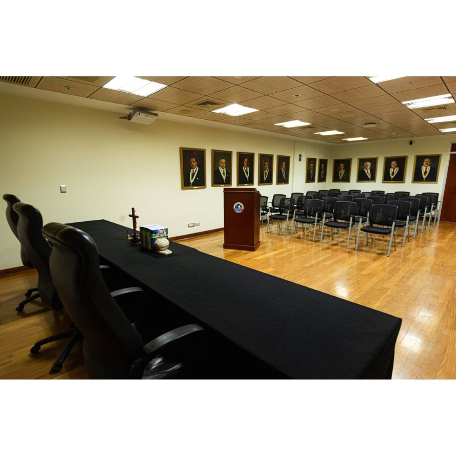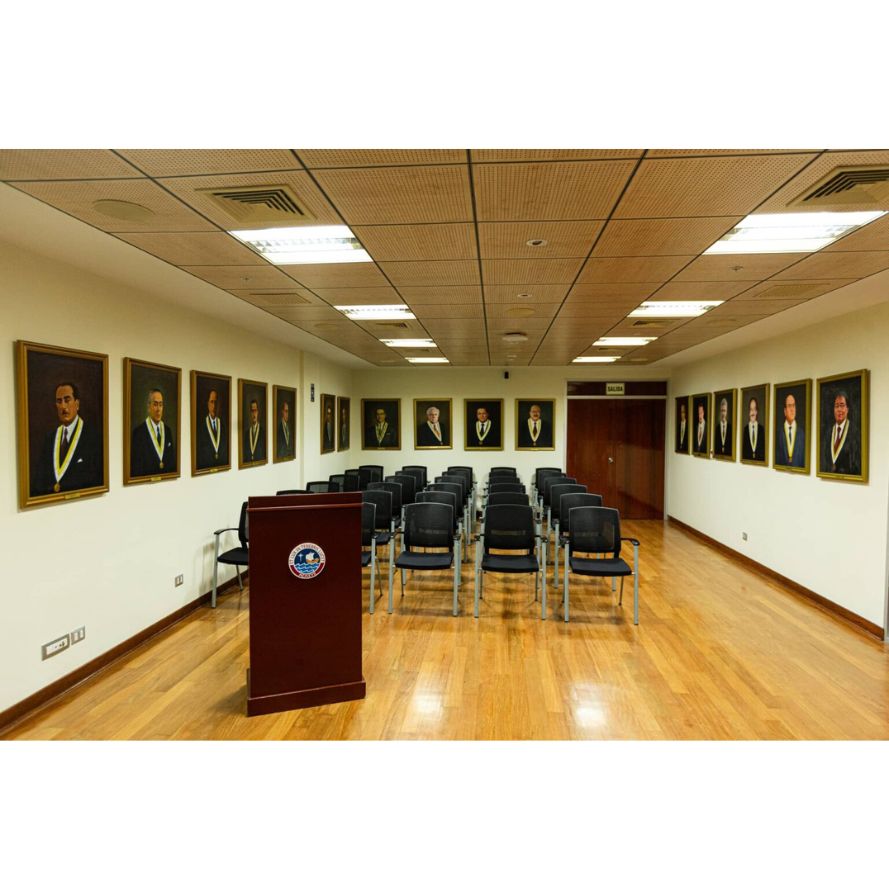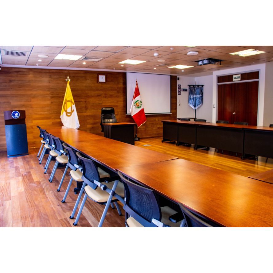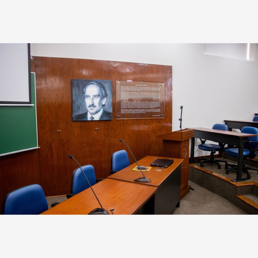 Ubicada en el sótano del edificio de la Facultad de Derecho. Esta sala está destinada principalmente a la realización de sustentaciones de tesis y trabajos de investigación de nuestros estudiantes.