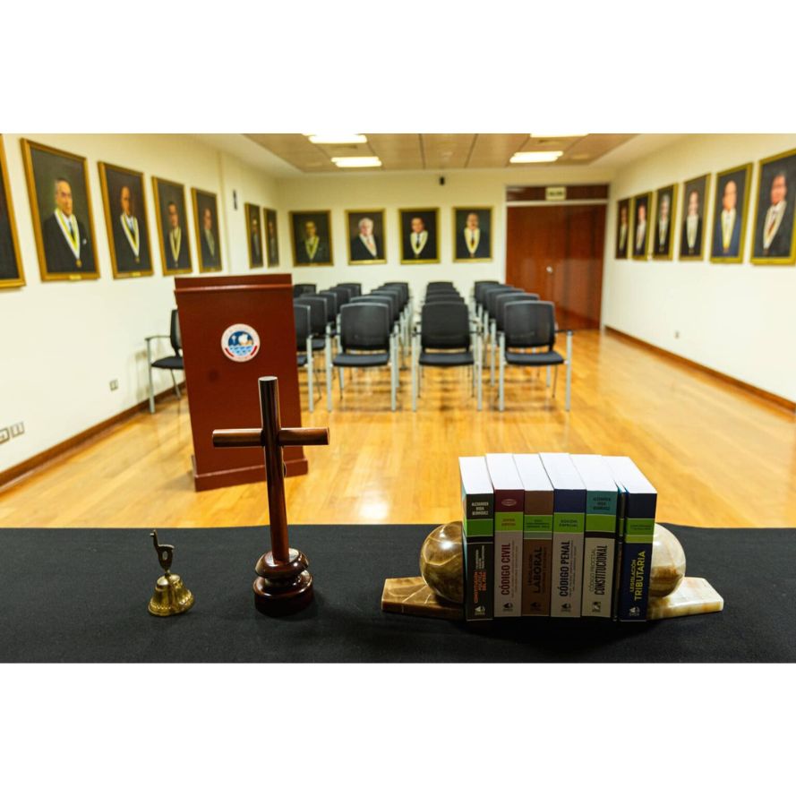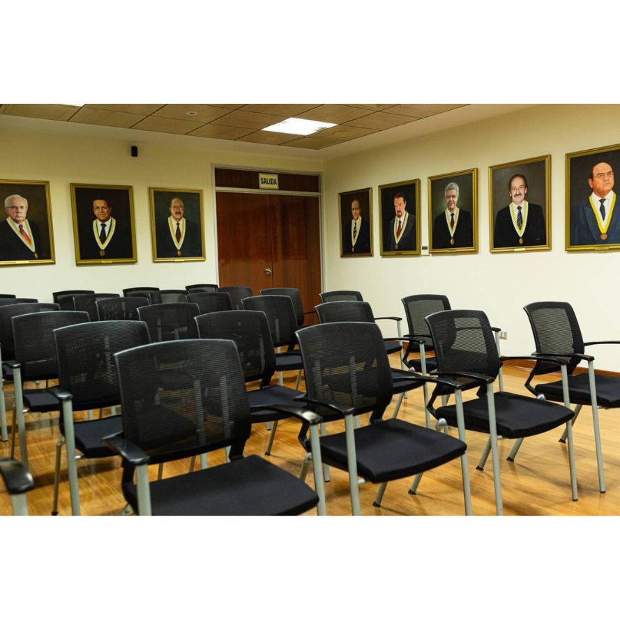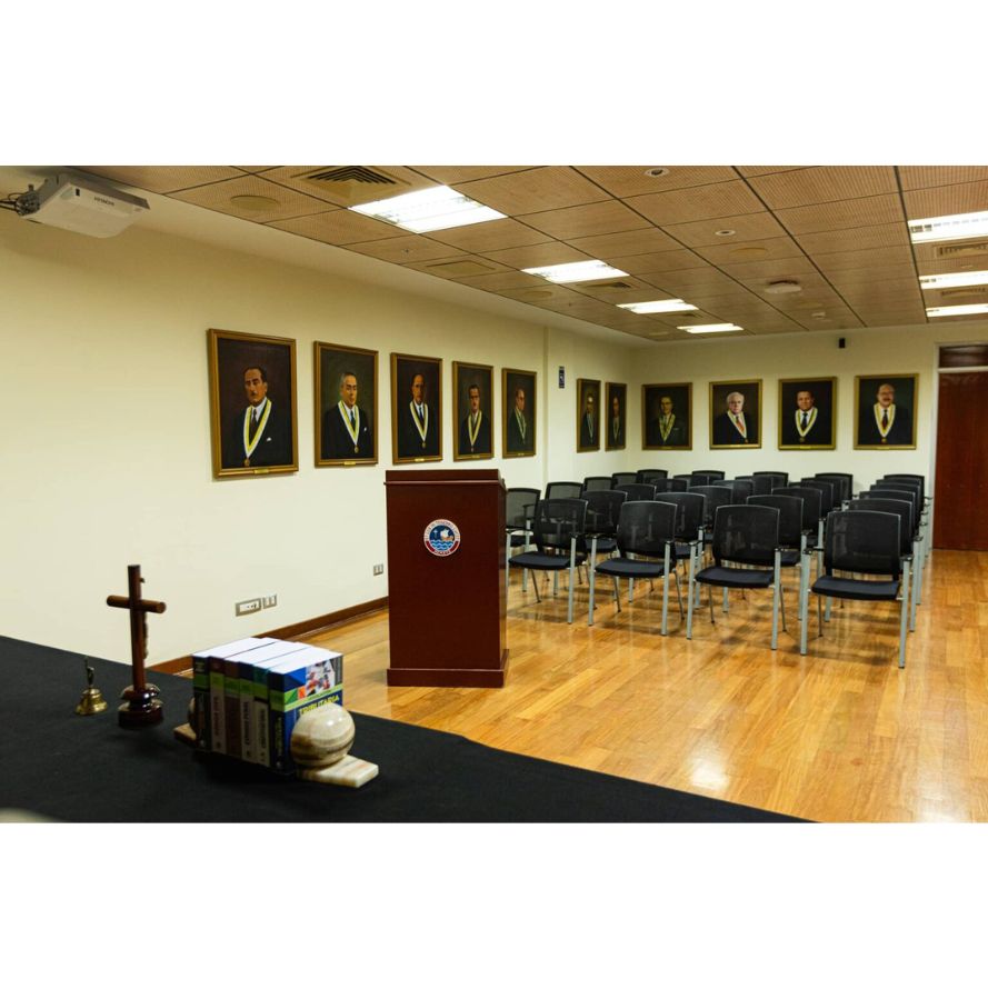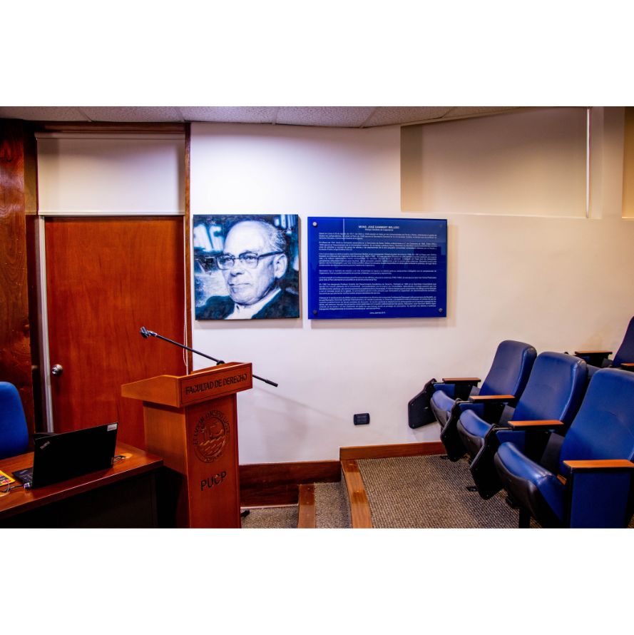 Ubicada en el sótano del edificio de la Facultad de Derecho. Esta sala está destinada principalmente a la realización de sustentaciones de tesis y trabajos de investigación de nuestros estudiantes.