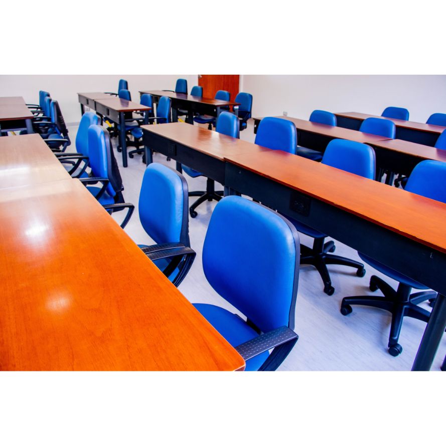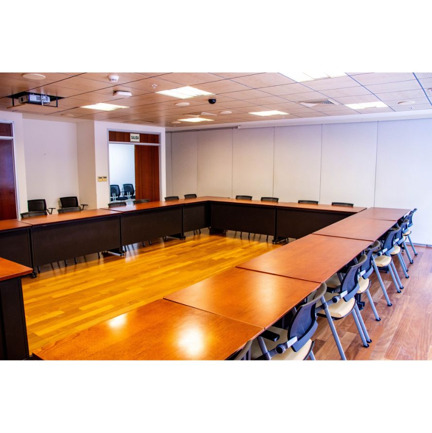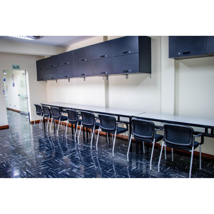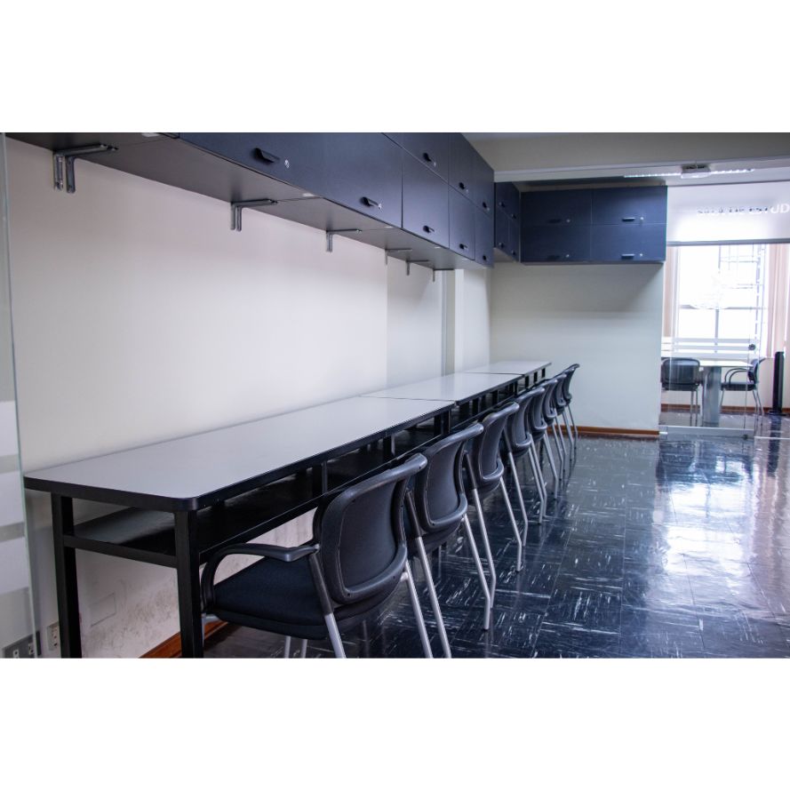 • Conectividad completa: acceso a Wi-Fi institucional, puertos para conexión de laptops en las mesas de trabajo y PC fijo integrado al sistema.