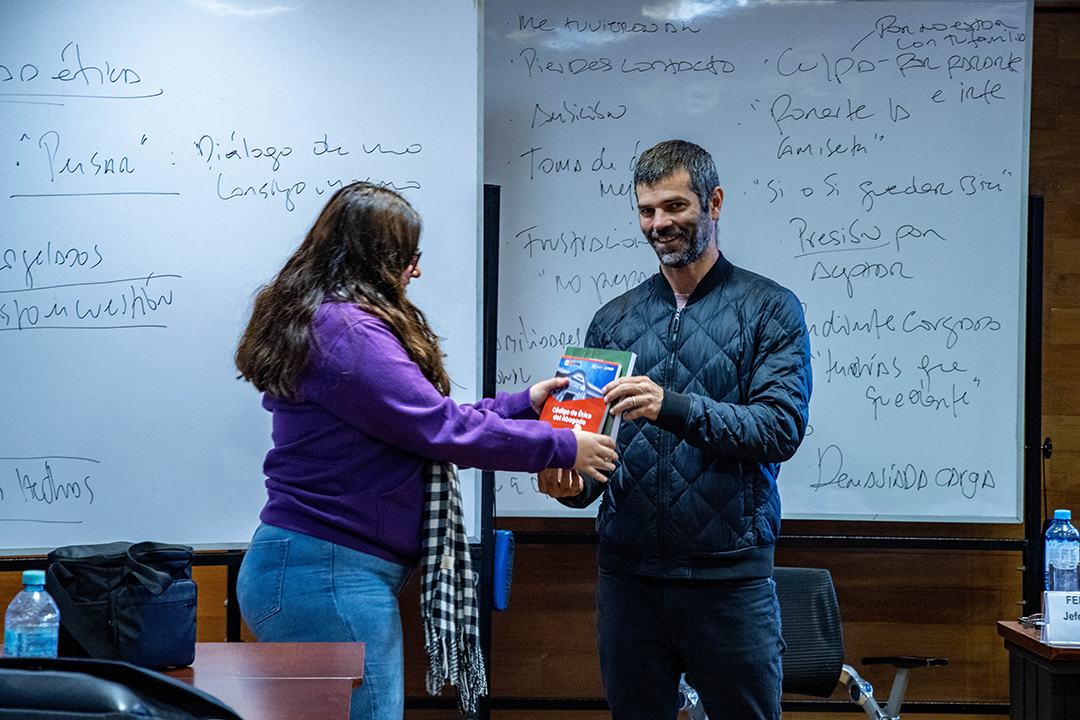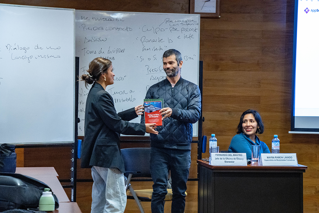 La sesión, de carácter teórico-práctico, estuvo a cargo de Fernando del Mastro, jefe de la Oficina de Ética y Bienestar, y Mayra Ramón, especialista de Modalidades Formativas. Durante el taller se abordaron temas fundamentales para el futuro abogado, tales como: