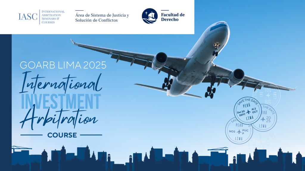 ¿Estás interesado(a) en el arbitraje de inversión? La Facultad de Derecho PUCP, en colaboración con IASC (International Arbitration Seminars & Courses), se enorgullece de presentar la segunda edición de GoArb Lima 2025. Este curso intensivo de tres días, diseñado para brindarte herramientas prácticas y teóricas, es la oportunidad perfecta para impulsar tu carrera en el ámbito del arbitraje internacional.